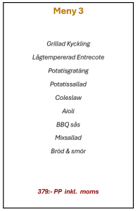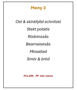 Priset ändras beroende om man tar bort eller lägger till rätter i eventuella meny förslagen.